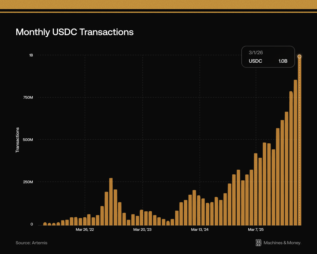 A prime example of this strength is Circle’s USDC stablecoin usage – over 1B unique USDC transactions were processed in March, over 100M more than its prior monthly record.