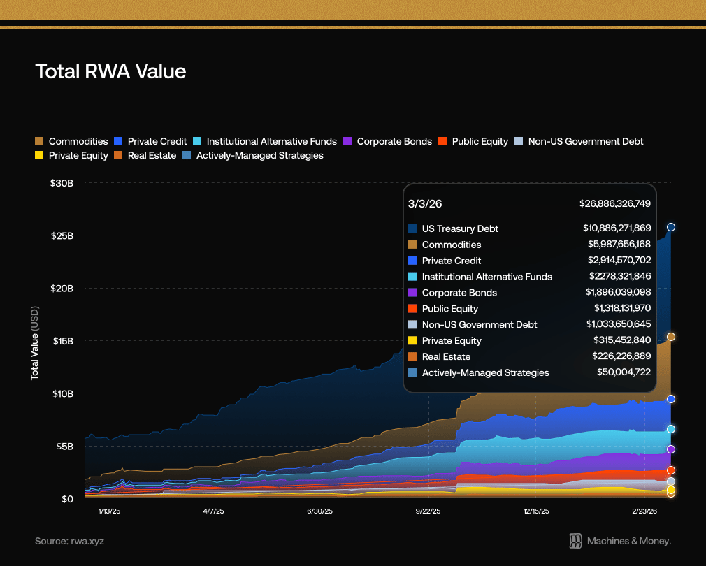 Since the beginning of 2025, the value of tokenized assets has grown from $5.7B to $26.9B, or 372%.