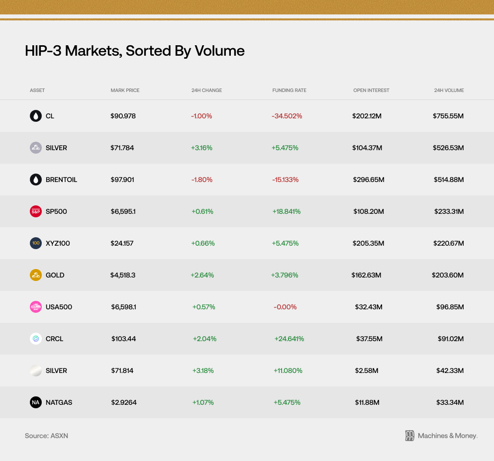 As I’m writing this on Wednesday, this S&P contract is the 4th largest HIP-3 asset by volume with over $233M traded in the past 24 hours.
